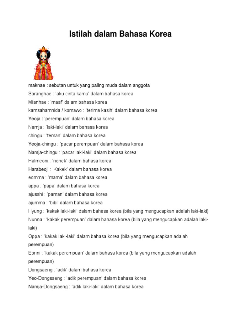 Nah, itulah 7 bahasa korea sayang yang sering digunakan oleh para orang korea untuk memanggil pasangannya. 10 panggilan sayang bahasa arab, bikin pasutri makin harmonis! Dari segi penulisannya sendiri, bahasa korea merupakan turunan dari bahasa cina sebagai. Mau kamu coba ke pasanganmu juga? Apa sih bahasa koreanya sayang?